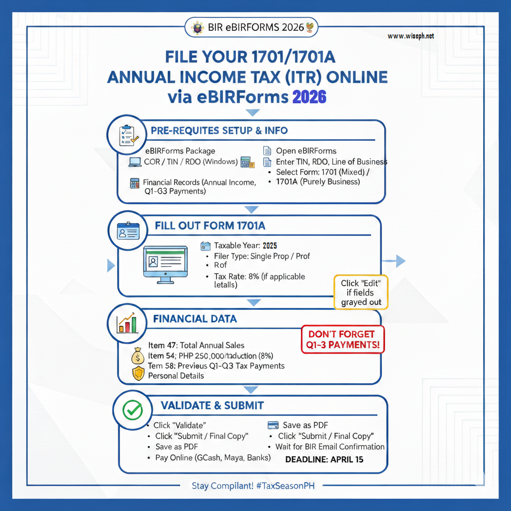 How to File 1701/1701A Annual Income Tax Return (ITR) Online via eBIRForms 2026: A Step-by-Step Guide Filing your taxes in the Philippines has become significantly easier with the Bureau of Internal Revenue’s (BIR) online tools. If you are a freelancer, a professional, or a small business owner, filing your Annual Income Tax Return (ITR) for 2026 is a crucial task.