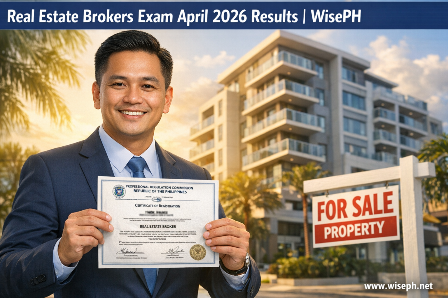 Results are out for the Real Estate Brokers Licensure Examination April 2026. PRC confirmed [PASSERS] out of [TAKERS] passed, a [RATE]% passing rate from the April 16, 2026 single-day exam. If you passed, congratulations. If you didn’t, this post has your next steps too. For all PRC board exam results and updates, WisePH covers every licensure cycle.